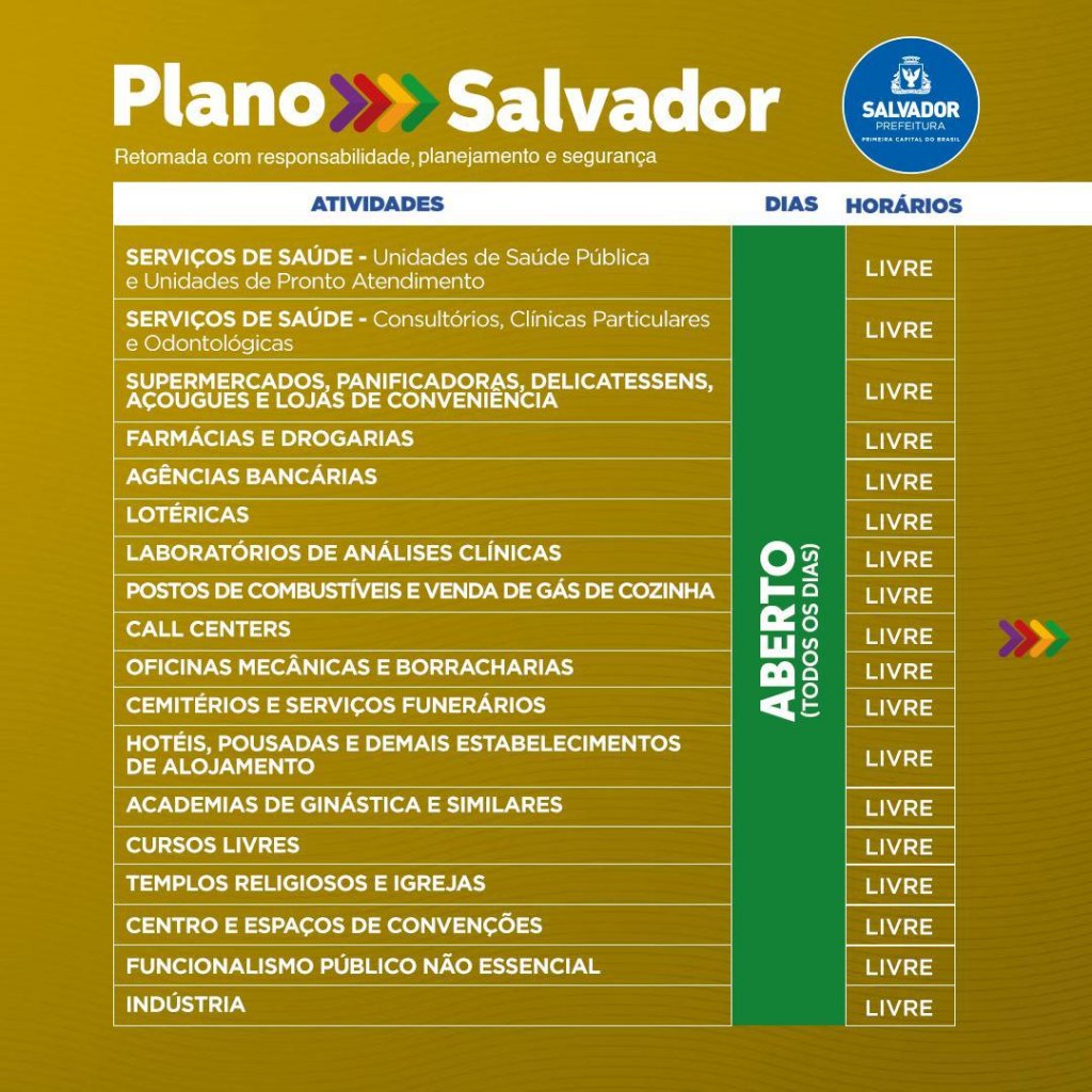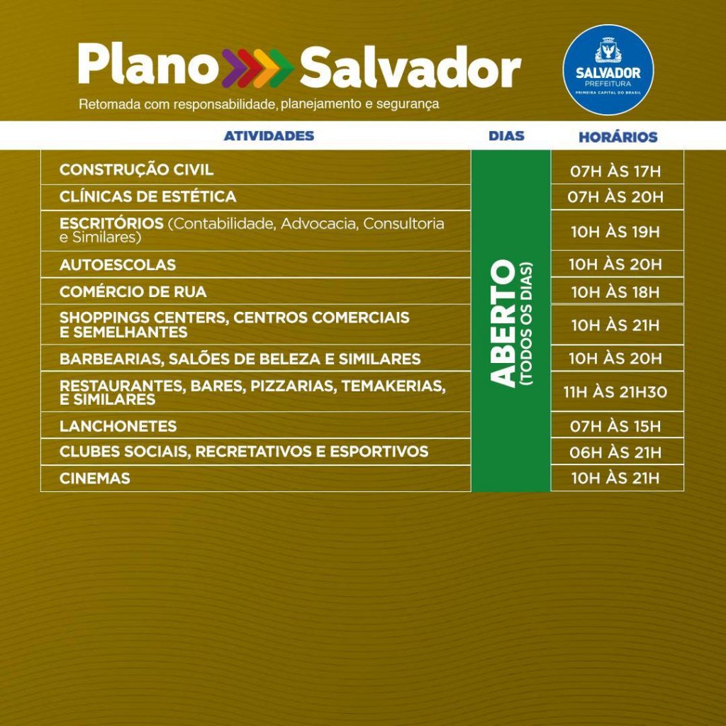 O prefeito, Bruno Reis explicou que, quando o plano foi lançado, no início de abril, a cidade estava na fase vermelha, com abertura escalonada das atividades, fechamento de cada uma delas por dois dias na semana e o toque de recolher estadual era de 20h às 5h. Neste mês de maio, contudo, a situação já permite um novo passo na retomada da economia, sem comprometer a segurança da população nesse período de crise sanitária.