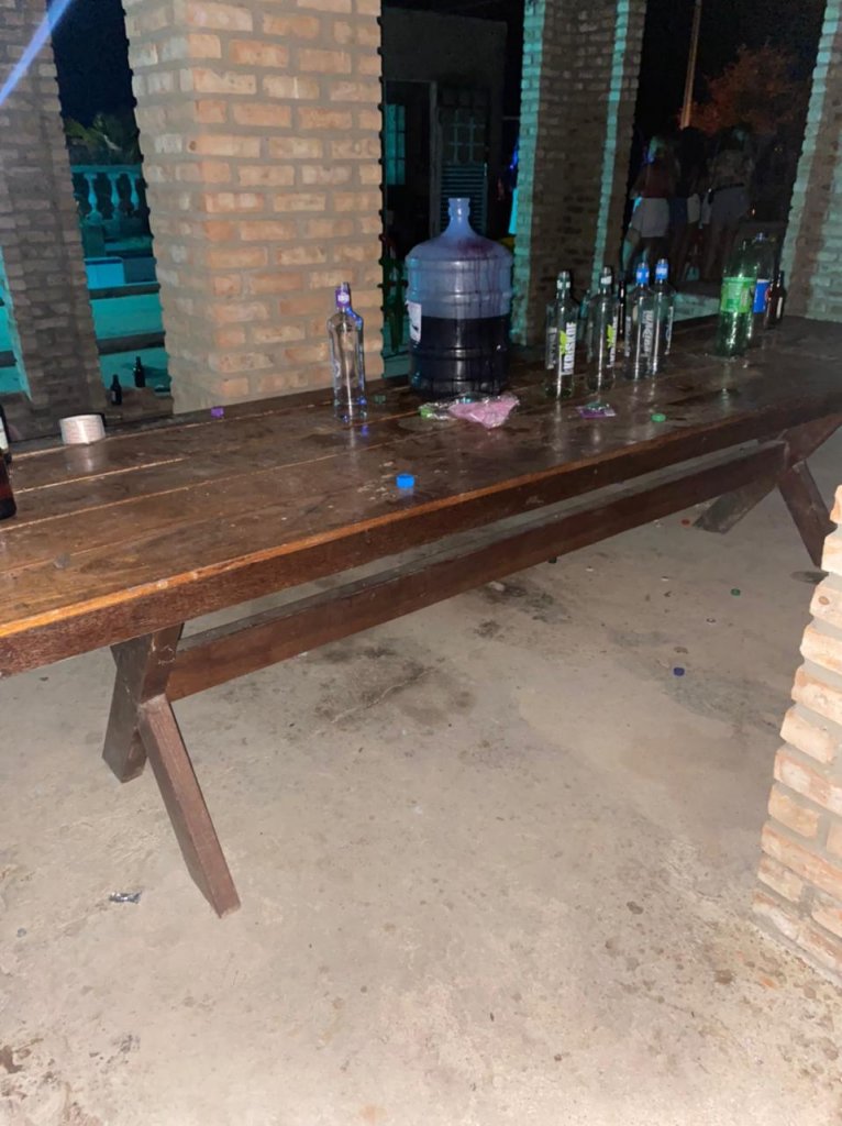 Uma denúncia anônima levou as equipes até o local, onde ocorria a comemoração. Vinte sete adolescentes e 70 adultos participavam da festa. “Também foram encontrados diversos frascos vazios de lança-perfume”, detalhou o comandante da 34ª CIPM, major Mário Augusto dos Santos Cabral.