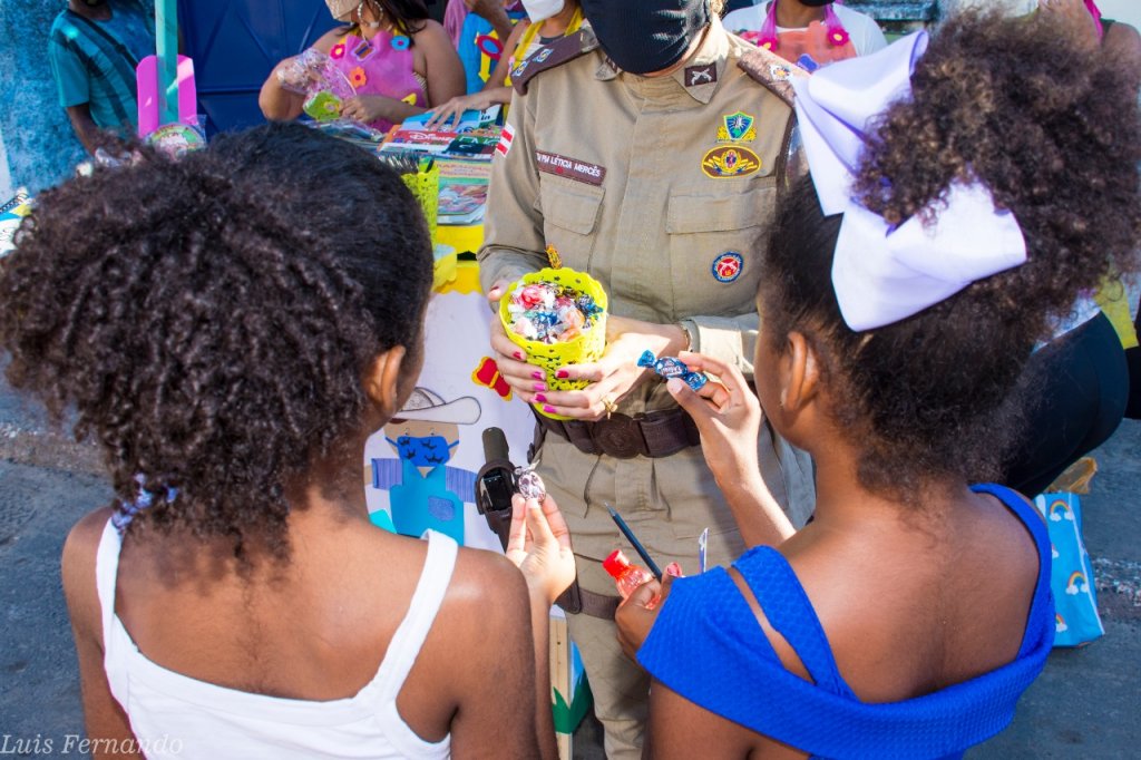 Um carrinho para leitura e espaço para apresentações culturais foram montados na praça, em frente à unidade de policiamento comunitário, onde policiais e alunos do curso de Pedagogia da Faculdade Batista Brasileira comandaram as brincadeiras. Mais de 100 livros, lápis, doces a e álcool em gel foram entregues.