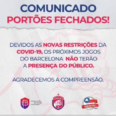De portas fechadas, o time resolveu que jogarão sem a presença da torcida devido às novas restições de público que define o máximo de 1.500 torcedores.