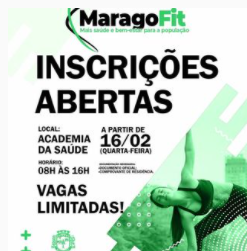 O programa de emagrecimento MaragoFit abriu inscrições na quarta-feira (16), na Academia da Saúde. O atendimento das inscrições são das 8h às 16h.É preciso levar os documentos: RG e comprovante de residência.